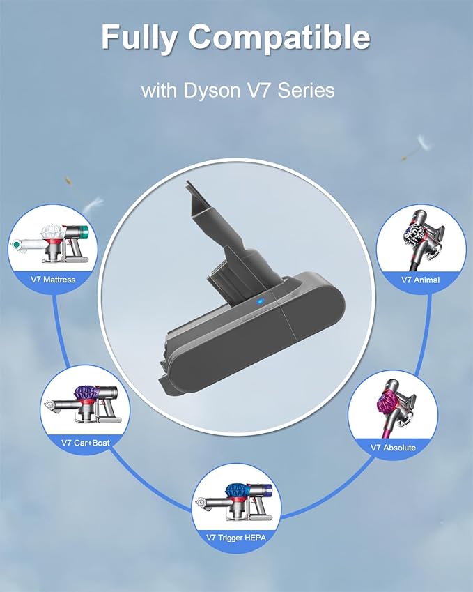 - Compatible with Dyson V7 vacuum cleaner. Battery Replacement for Dyson V7 Animal Cordless Vacuum Cleaner Stick V7 Motorhead V7 Motorhead Pro V7 Trigger V7 Trigger + V7 Car + Boat Extra V7 V7 Fluffy Mattress.